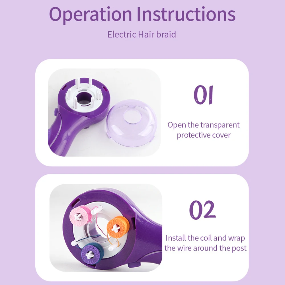 Feature: 1. Reliable Material: Hair braider machine are made of ABS material, ensuring safety and reliability. With dimensions of approximately 6.69 x 3.15 inches (17 x 8 cm), the handle is designed to fit comfortably in children's hands. It provides easy grip, comfortable touch, and long-lasting use. 2. Complete Hair Tool Set: Automatic hair braider includes 1 automatic hair braider, 1 hair hook, 3 braiding threads, 6 hair clips, and various colorful rubber band accessories. The hair braider requires 2 AA batteries (batteries not included). Please refer to the images for more details. 3. Easy Operation: When using electric hair braider, simply open the transparent cover of the electronic hair braider, place the colored threads in the auxiliary column, and adjust their balance according to the remaining length. Then use the hair hook to catch the hair and pass it through the braider, switch on, and embark on a fashionable journey. 4. Cute Purple Hair Braider: The design of this hair braider tool is incredibly stylish and cute, captivating the attention of young girls. It helps them develop their sense of fashion and image, allowing your girl to become a beautiful princess and enjoy their happy moments. 5. Create Various Hairstyles: With a variety of thread colors included in hair twister machine, our automatic hair braiding kit enables you and your girl to create various hairstyles that complement different outfits and styles. Enhance your appearance with cuteness, youthfulness, and vibrant energy. Specification: Origin: Mainland China Size: 17x8cm Size: 6.69x3.15 inches Material: Plastic Note: Due to the different monitor and light effect, the actual color of the item might be slightly different from the color showed on the pictures. Thank you! Please allow 1-2cm measuring deviation due to manual measurement. 1 x Automatic Braider